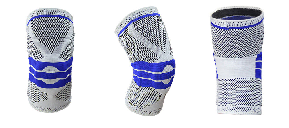 وسادة من السيليكون بتصميم تشريحي يحيط بالرضفة (صابونة الركبة)، مع دعامات معدنية نابضية مزدوجة الوجه تتناسب بشكل مثالي مع مفصل الركبة.
